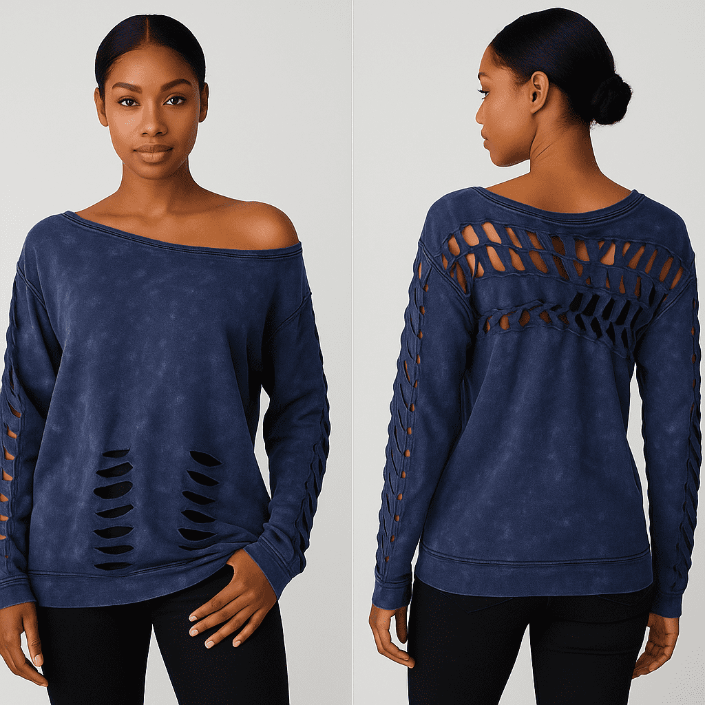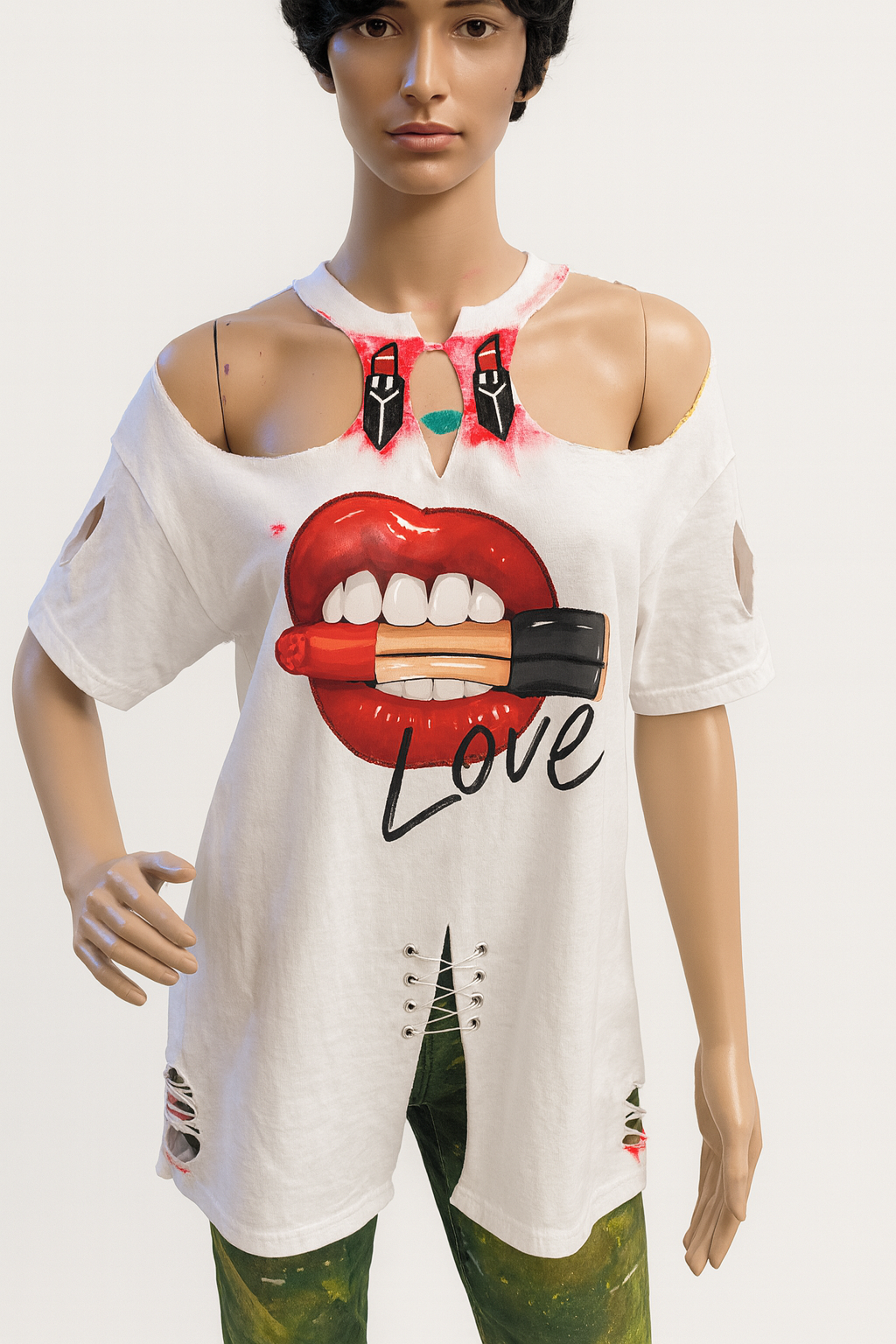 • MAXINE FASHION CLOSET, REMIX DISTRESS, DENIM AND CAMOUFLAGE WITH CROCHET SKIRT New