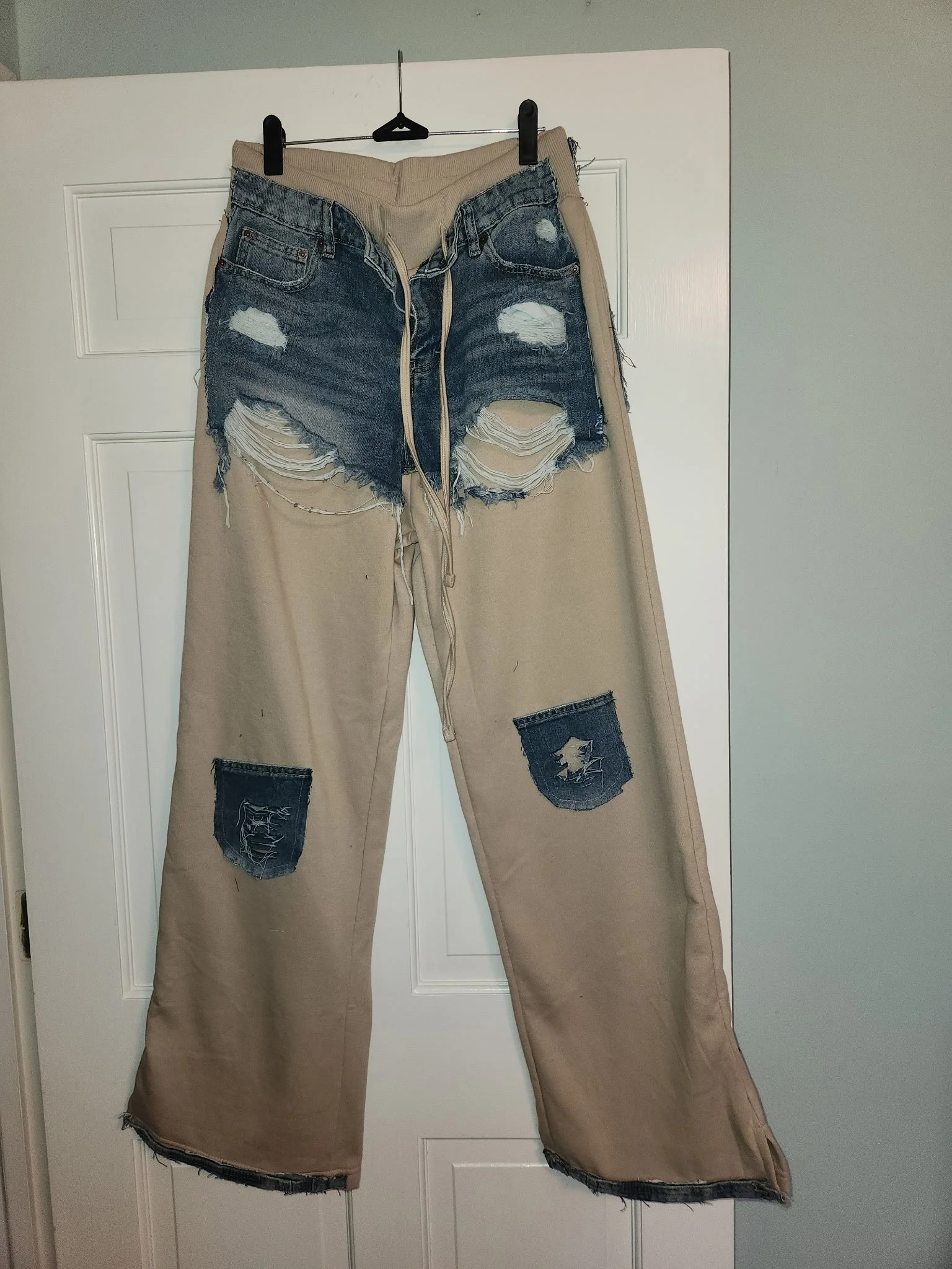 • MAXINE’S FASHION CLOSET REMIX DISTRESS DENIM SWEAT PANTS NEW Size Medium