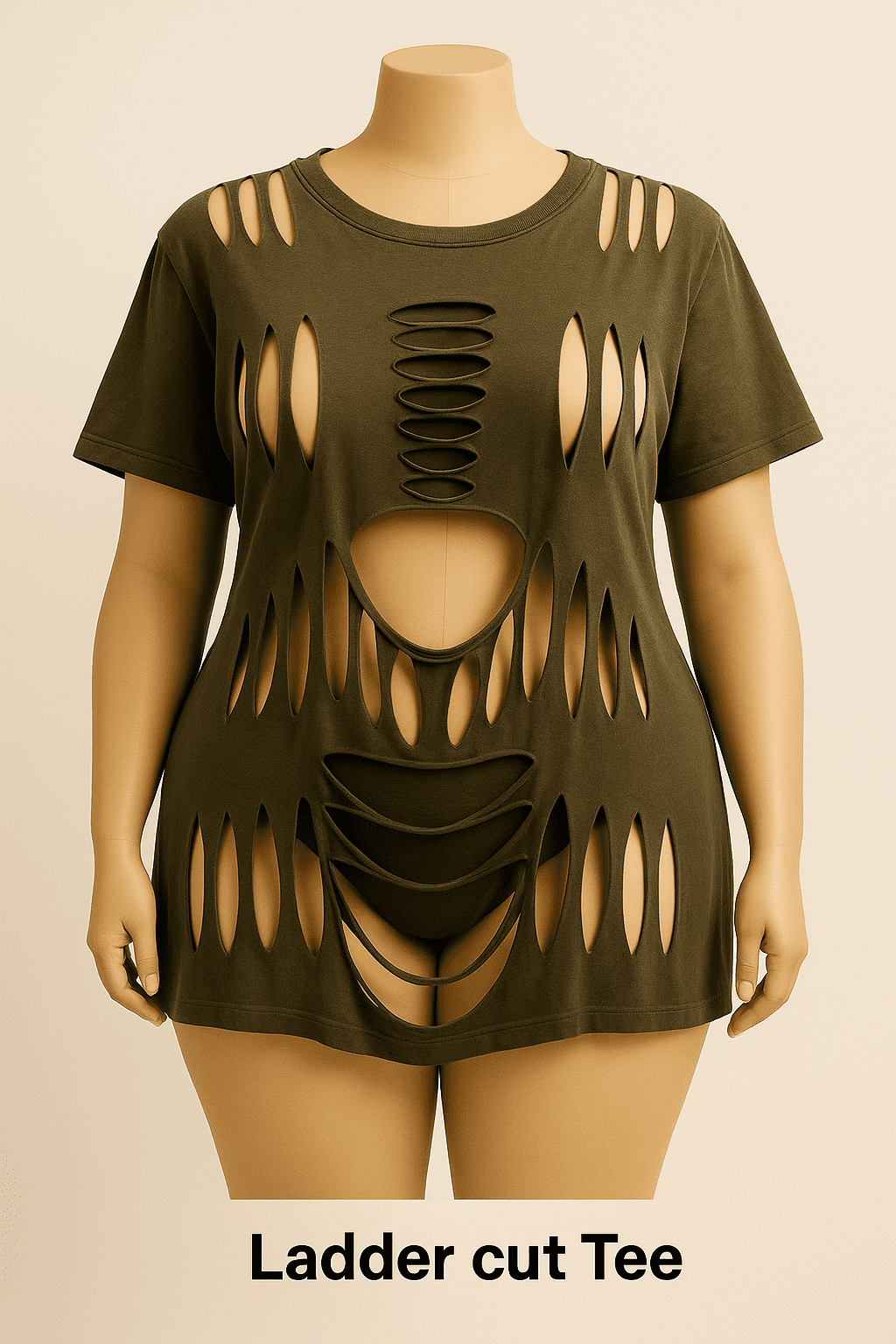 • MAXINE FASHION CLOSET BROWN & GOLD LADDER.CUT Size 2x T-SHIRT New