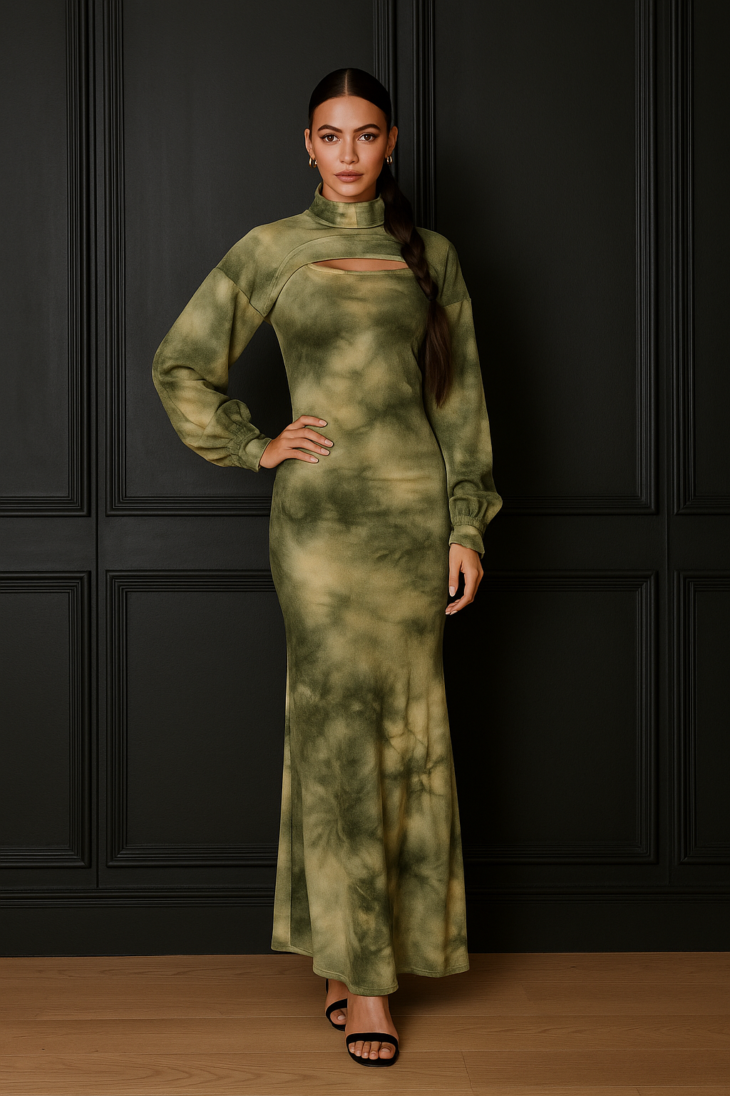 FASHION NOVA MAXI SPAGHETTI STRAP TIE DYE WITH LONG SLEEVE HOODED MATCHING TOP 2-1 NWT Size Small.