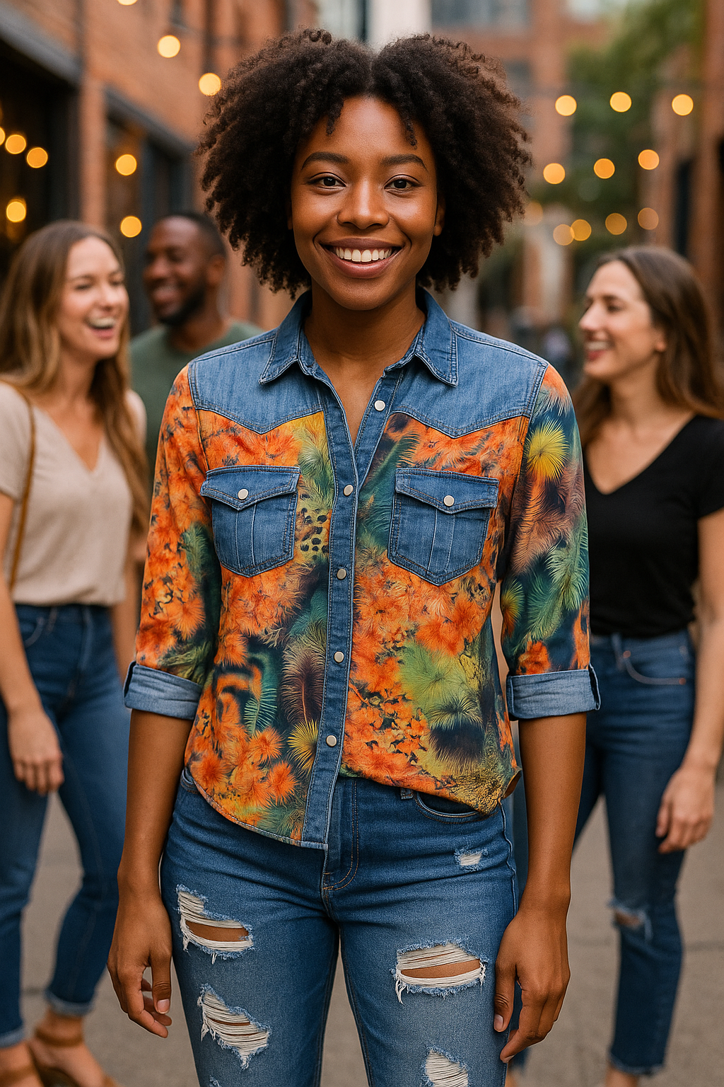 DENIM FLORAL BLOUSE Pre-Loved Size Medium