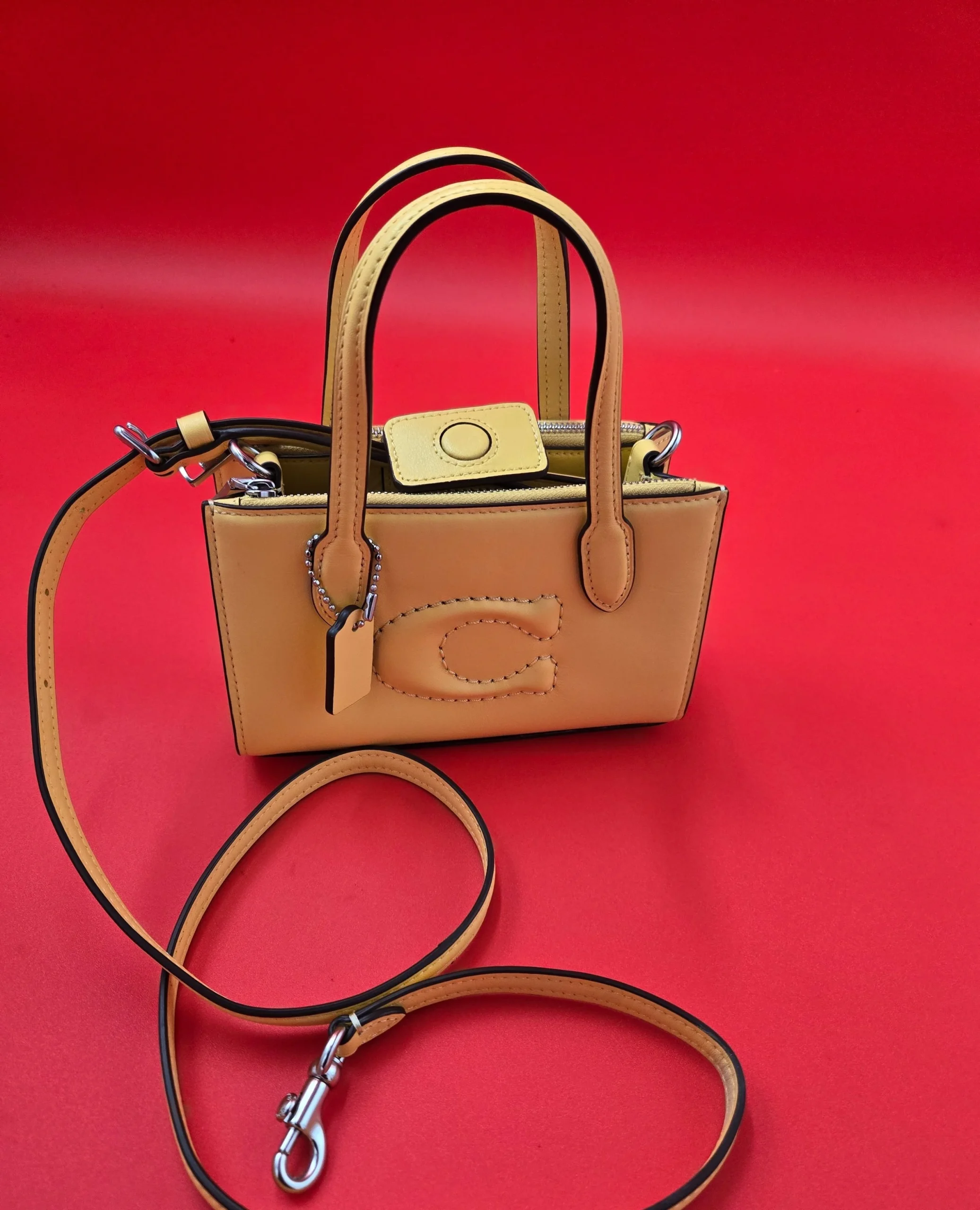 This super cute mini tote bag from Coach collection 😍 features a top handle and a detachable crossbody strap leather. This mini tote is good for cell phone, keys 🔑 small essentials.