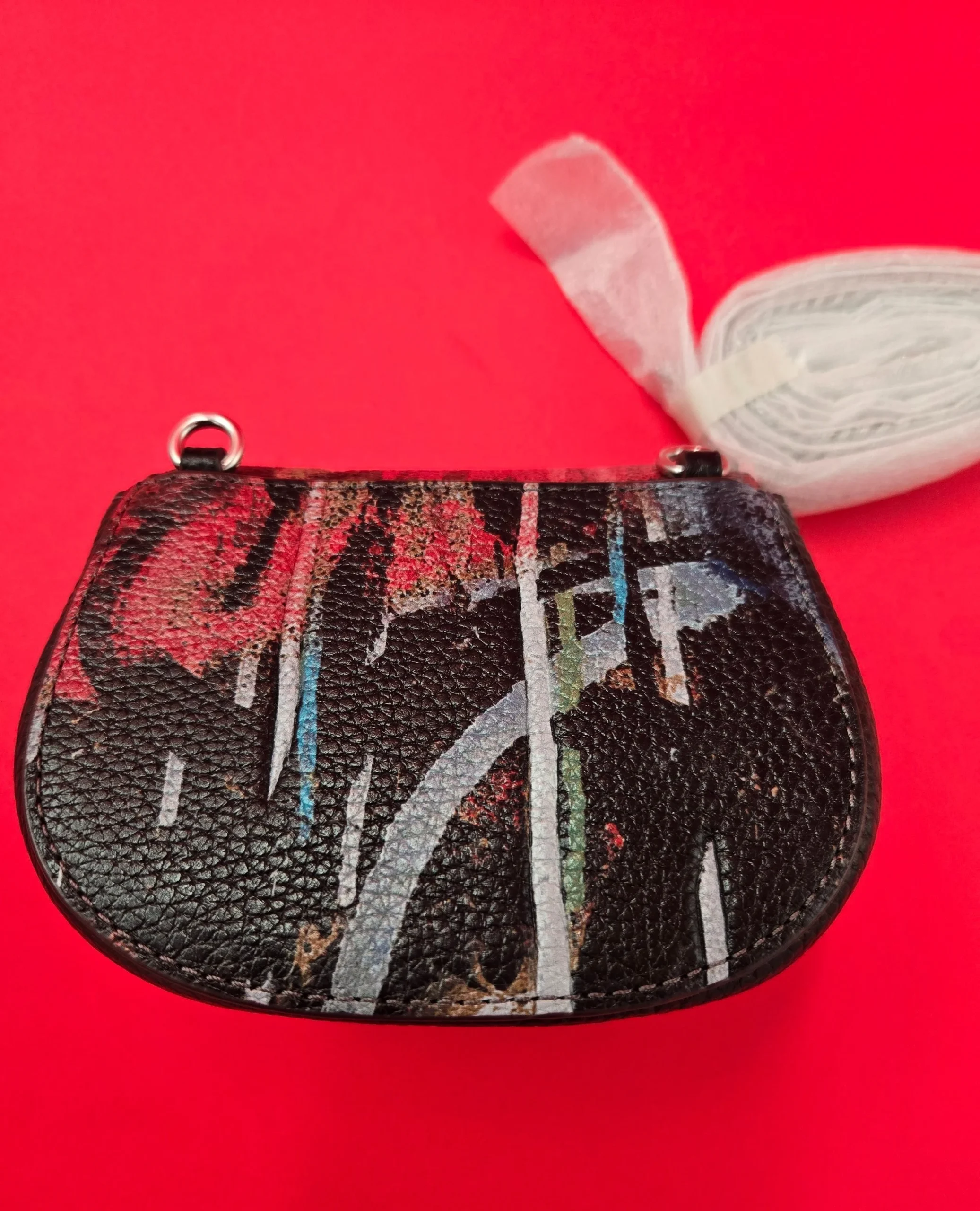 This coach bag is made refined pebble leather a detachable chain strap to wear crossbody or shoulder. Snap closure with fabric lining.