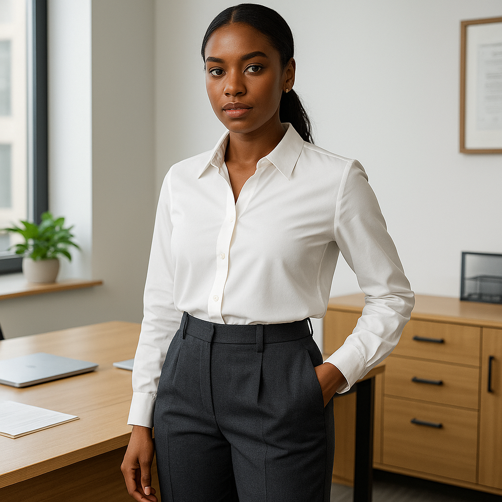 Elevate Your Office Wardrobe Step into sophistication with these tailored dark charcoal dress pants, designed for both style and comfort. Featuring a classic straight-leg fit, these pants are crafted from a soft, durable fabric that keeps you looking polished from morning meetings to after-work events. The structured waistband, discreet pockets, and refined crease add a touch of timeless elegance, making these pants a versatile staple for any professional wardrobe. Pair them with your favorite dress shirt or blouse for a look thatβs effortlessly chic and work-ready.