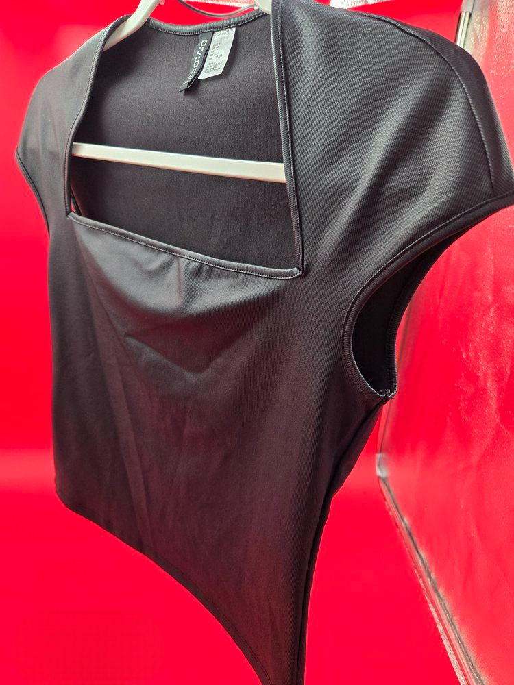 This faux leather spandex short sleeve wide neckline blouse from Fashion Nova beautiful 😍