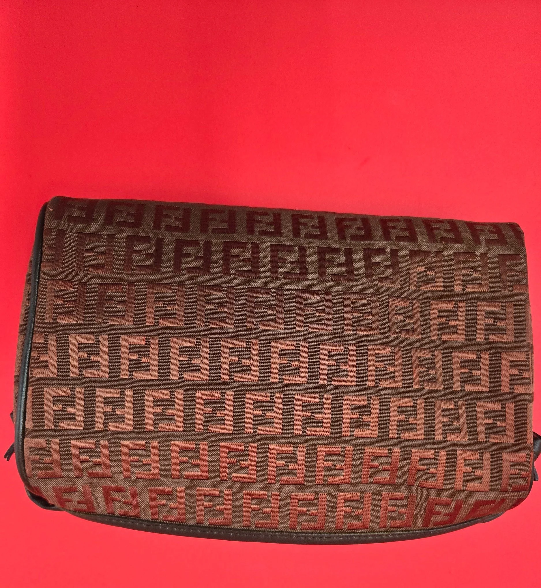 This vintage Fendi bag very sophisticated style features brown canvas black leather trimming top zip closure shoulder/crossbody strap bag . Spacious interior enough to carry your essentials .