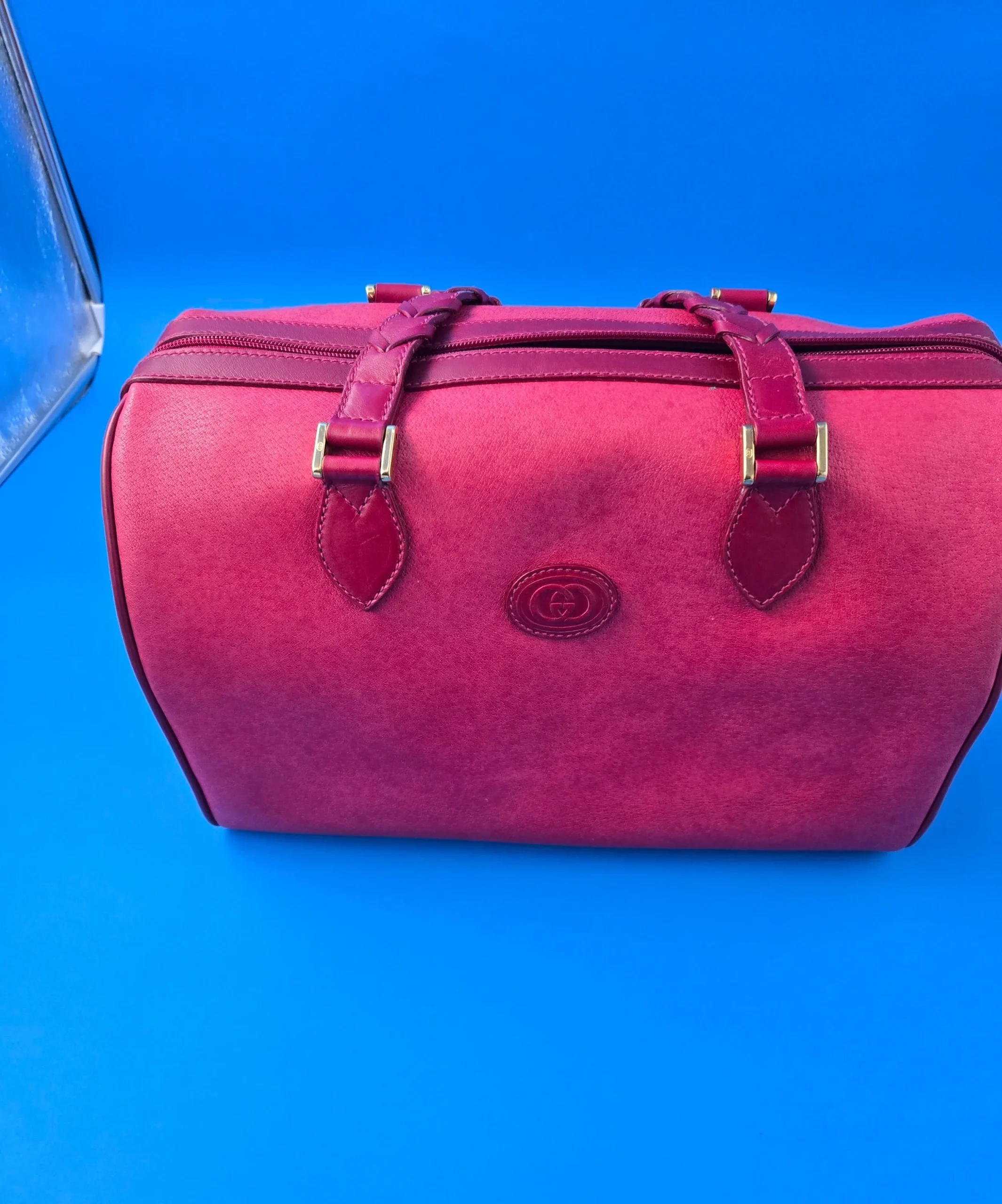 This vintage stylish Gucci handbags is classic design . Very spacious compartment features zipper closure inner pocket and GG logo leather on the front , detachable strap gold tone hardware with two leather top handles. Very good quality condition images attached.