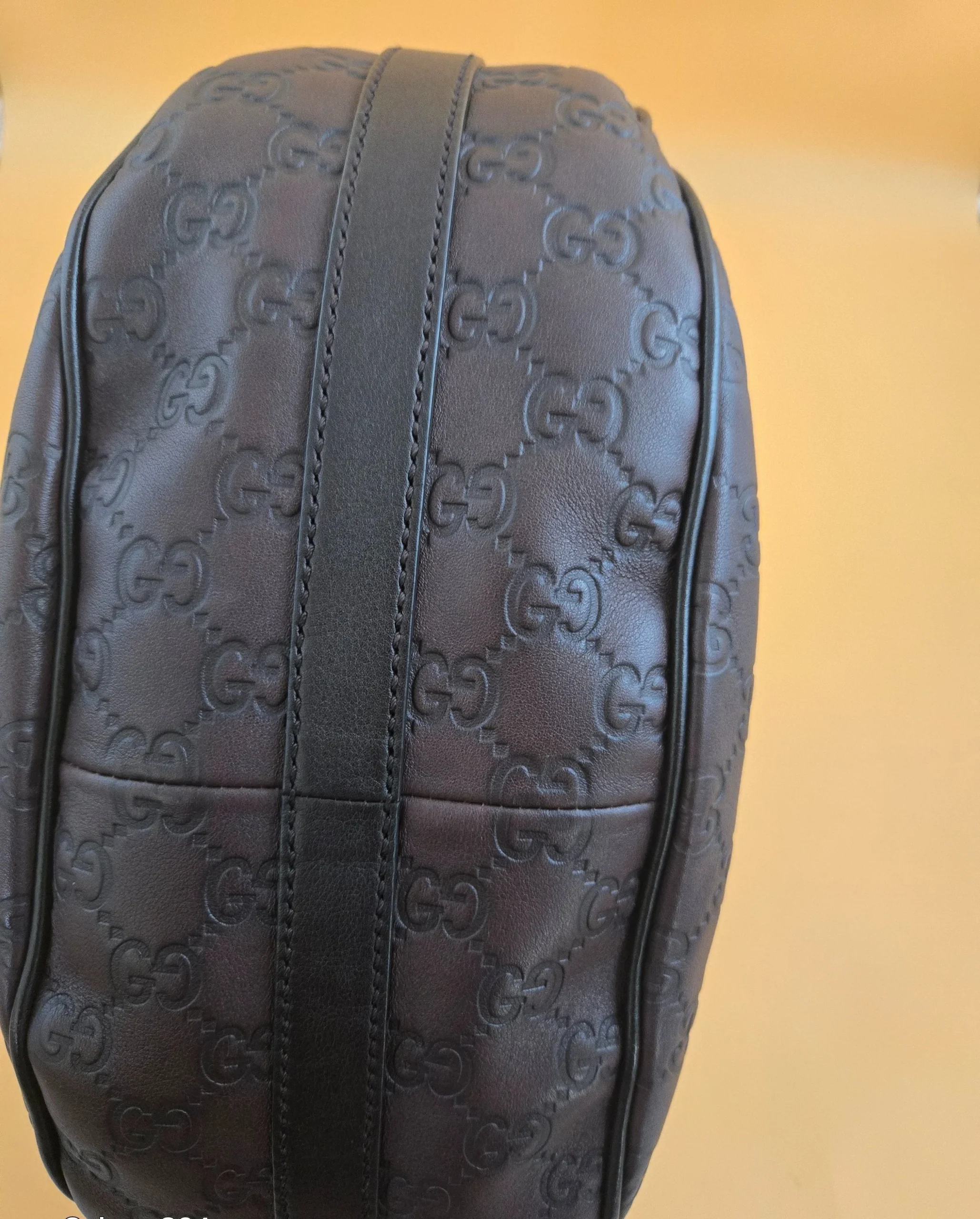 Gucci Shima brown leather is stunning design with spacious interior. Gold tone iconic logo GG on each side of the strap