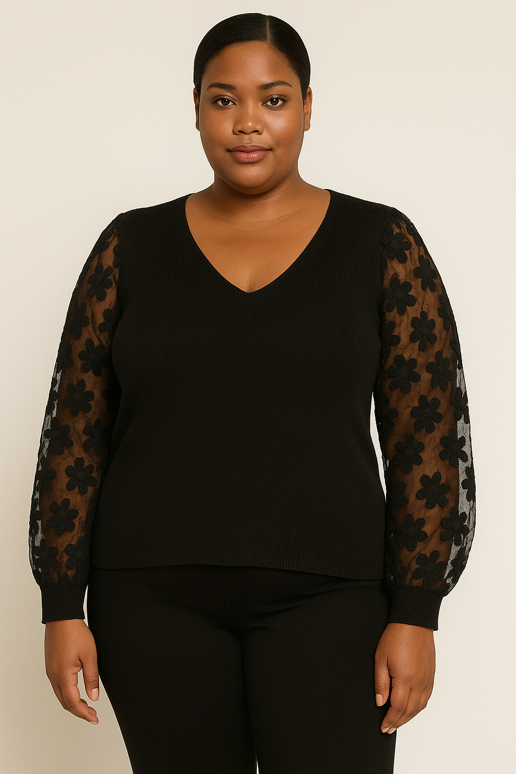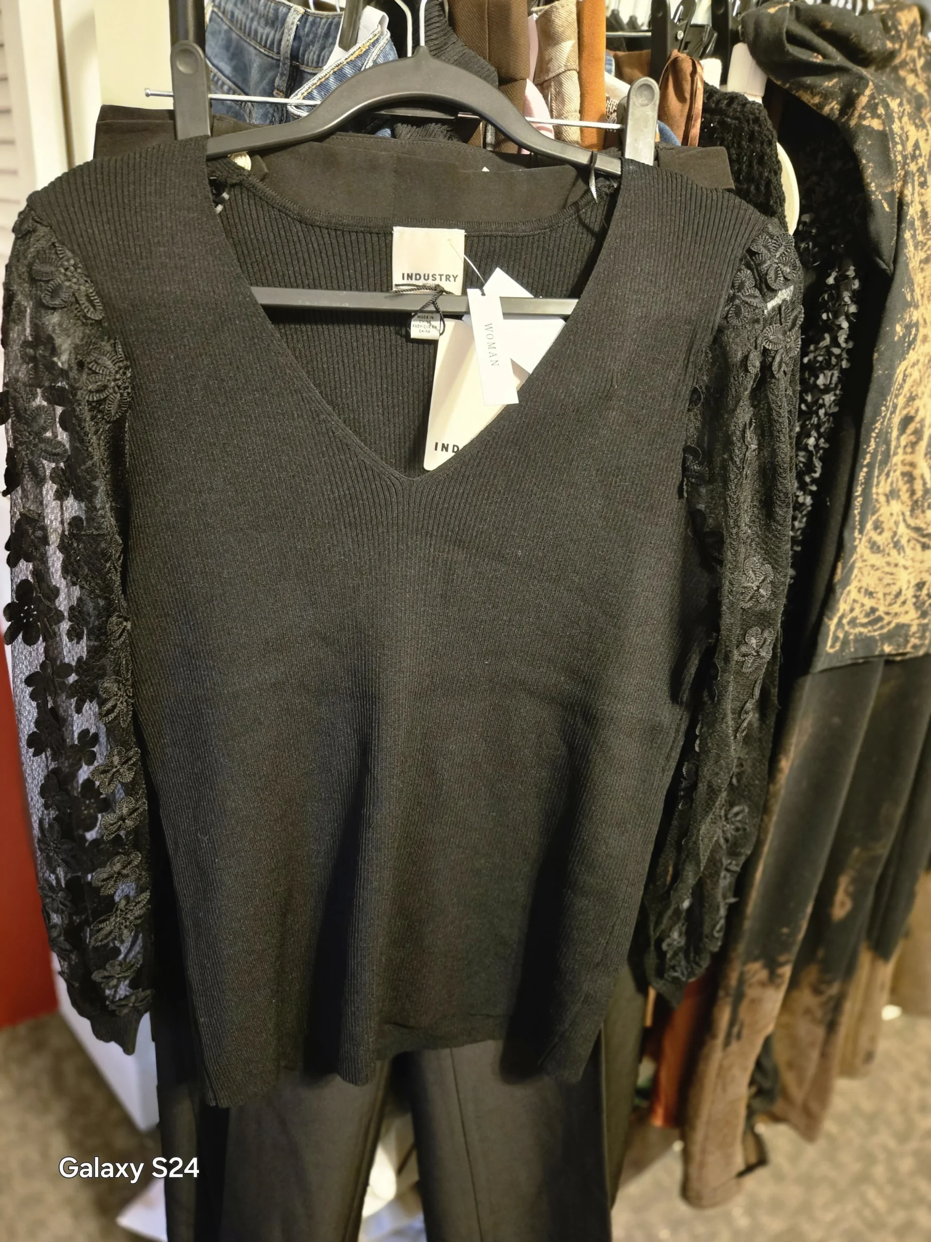 Elevate your wardrobe with this Industry sweater top β where cozy knit meets modern elegance. Crafted in a sleek black ribbed body with a flattering V-neckline, itβs finished with sheer embroidered sleeves that add just the right touch of romance and edge.
