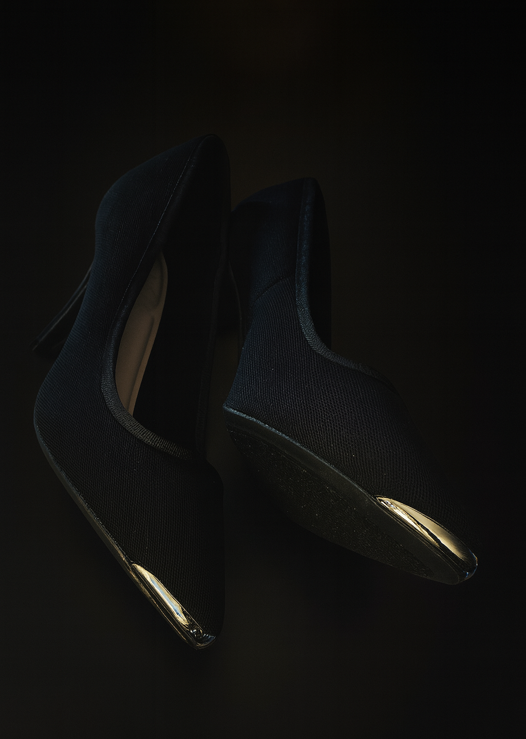 Step into timeless sophistication with these Jones New York black stiletto pumps. Designed with a sleek pointed toe accented by a metallic tip detail, these heels bring just the right amount of edge to a classic silhouette. The textured black fabric finish offers a refined touch, while the slender high heel elongates the legs for a confident, feminine look. Perfect for pairing with tailored suits, chic dresses, or evening wear, these pumps transition effortlessly from the office to a night out. The cushioned interior adds comfort to style, making them as wearable as they are elegant. Brand: Jones New York