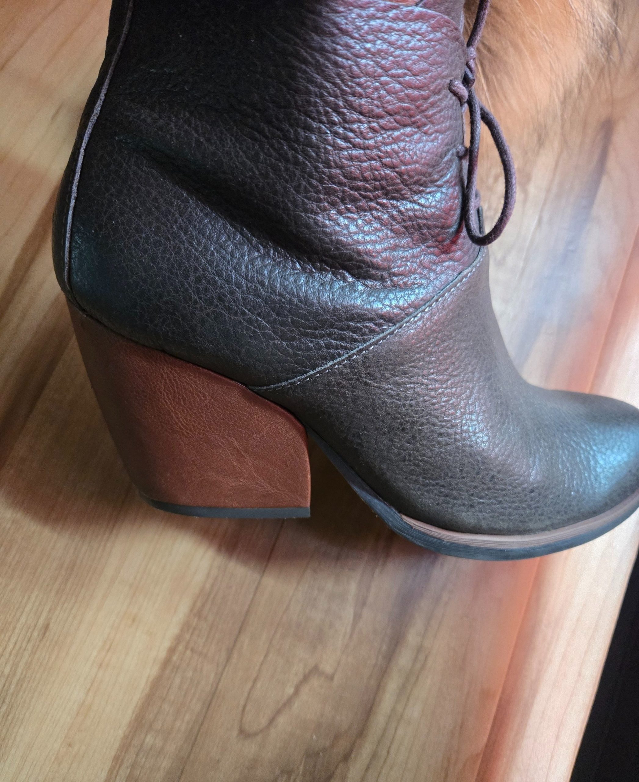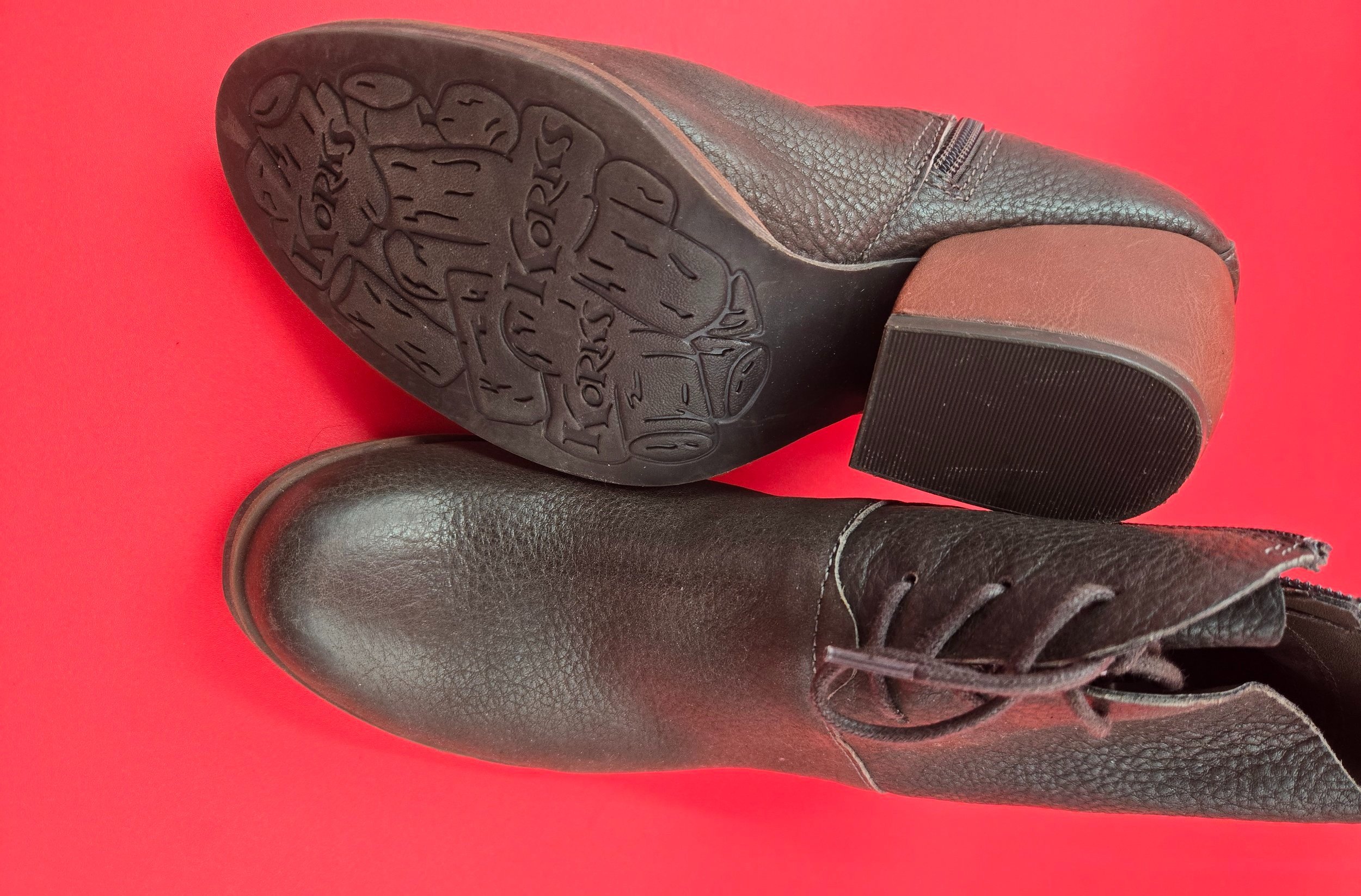 This KORK EASE ankle unique design effortlessly style with comfort keep you feeling confident. Upper Leather with a distinctive heel zip and lace closure. Elegant style. Excellent quality condition.