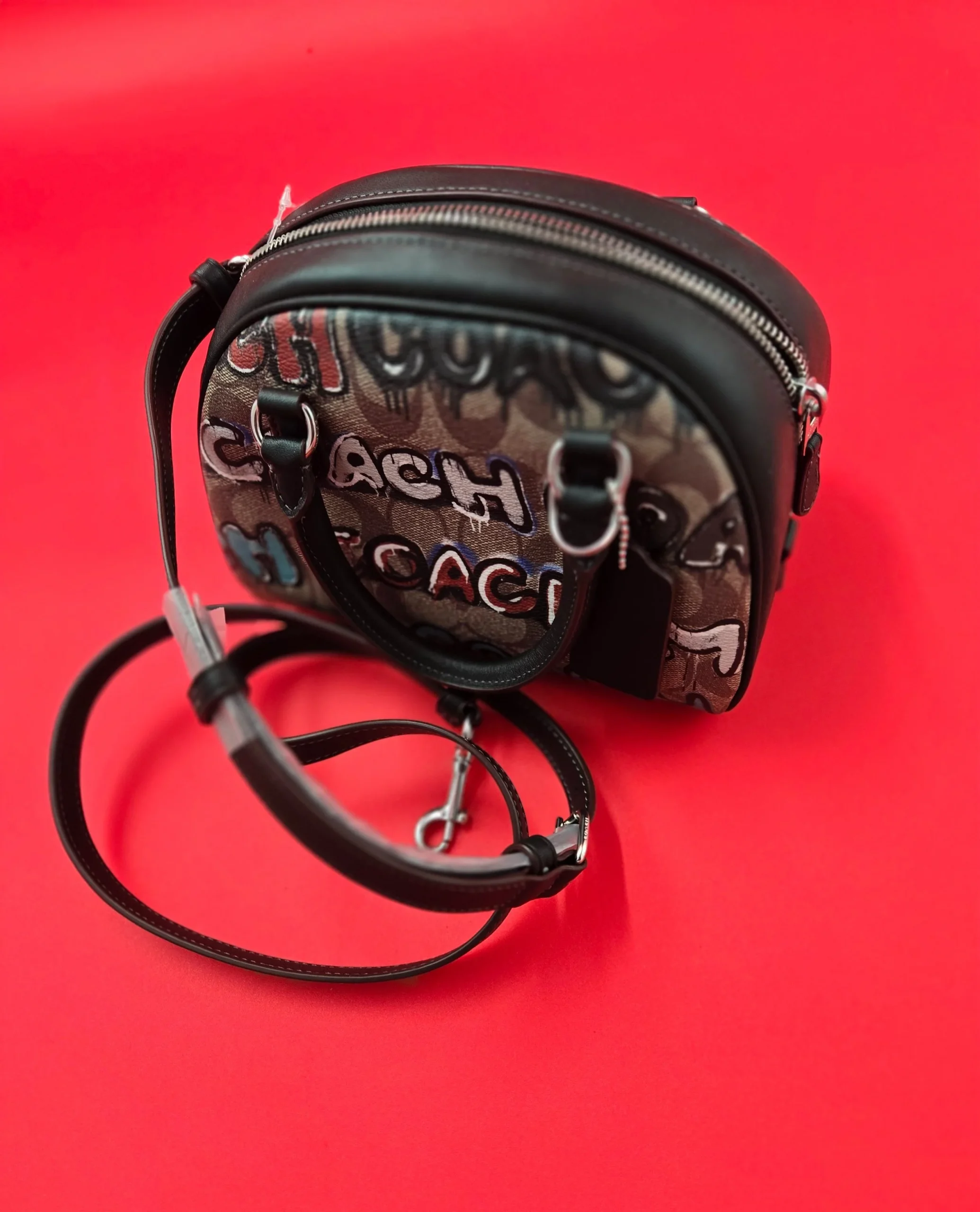 Signature coach coated canvas and smooth leather as a inside multifunction pocket . Zip closure , fabric lining Detachable strap for crossbody wear or shoulder wear 8″(L)×6″(H)×5(W) Coach xMint+Serf Brand new with tag.