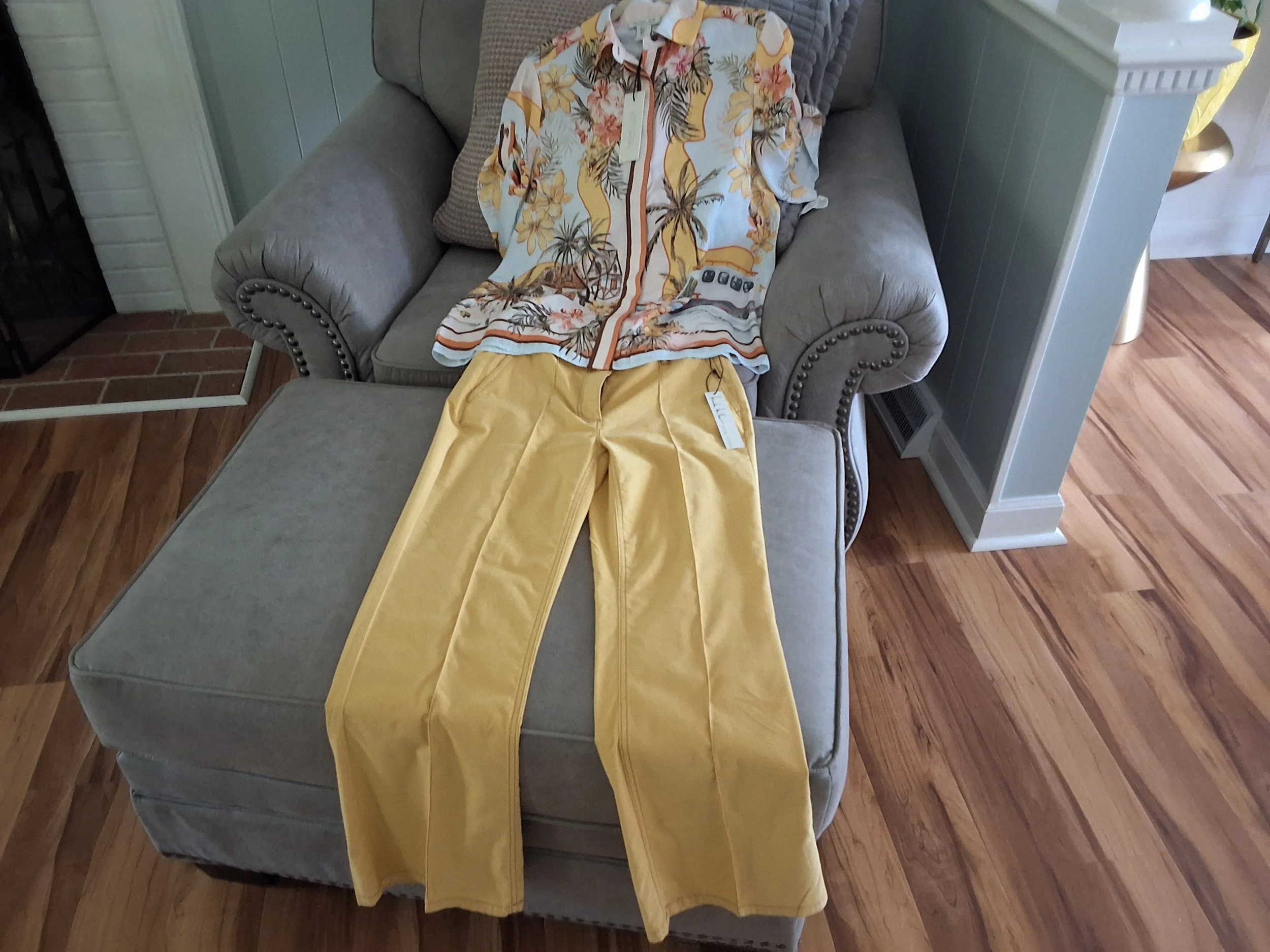 Explore the world of vibrant color . Set your mind in summer ready state and get inspired trendy fashion. This Nicolle Miller light yellow 💛 pants / slacks features Hi-Rise waist , straight leg button and zipper closure 2 side pockets and 2 welt back pockets Very comfortable and beautiful color