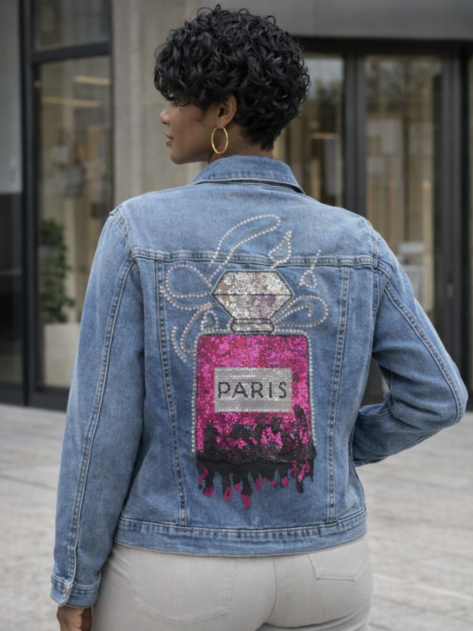 The back? That dripping pink “PARIS” perfume bottle is drama. It’s bold. It’s runway-meets-street. That’s remix energy.