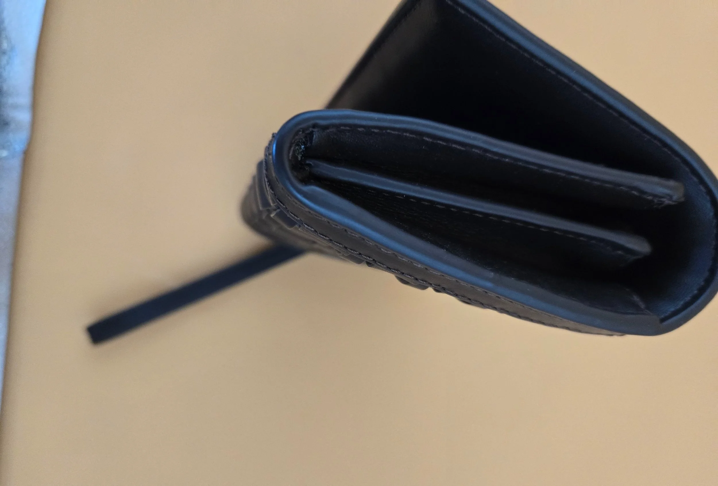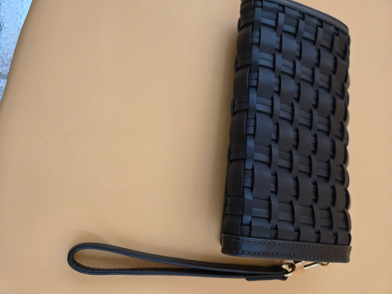This beautiful chocolate wristlet as a flap front snap closure I and also wallet.