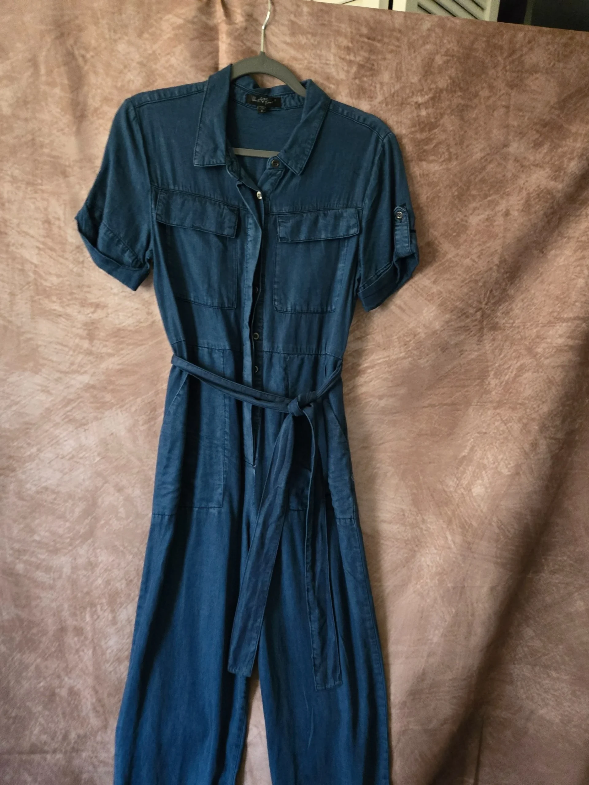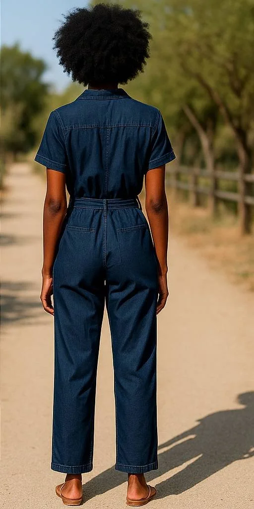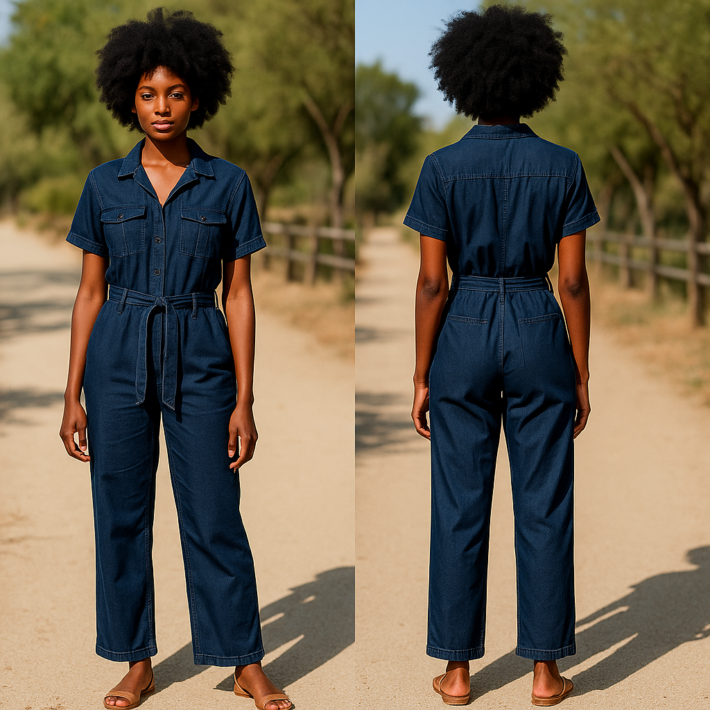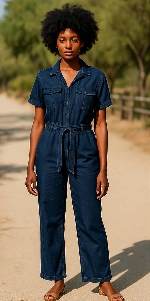 His cute Velvet Heart Denim Jumpsuit nice 👌 for wear non stretchy two side pockets, one back pocket with a long belt material.