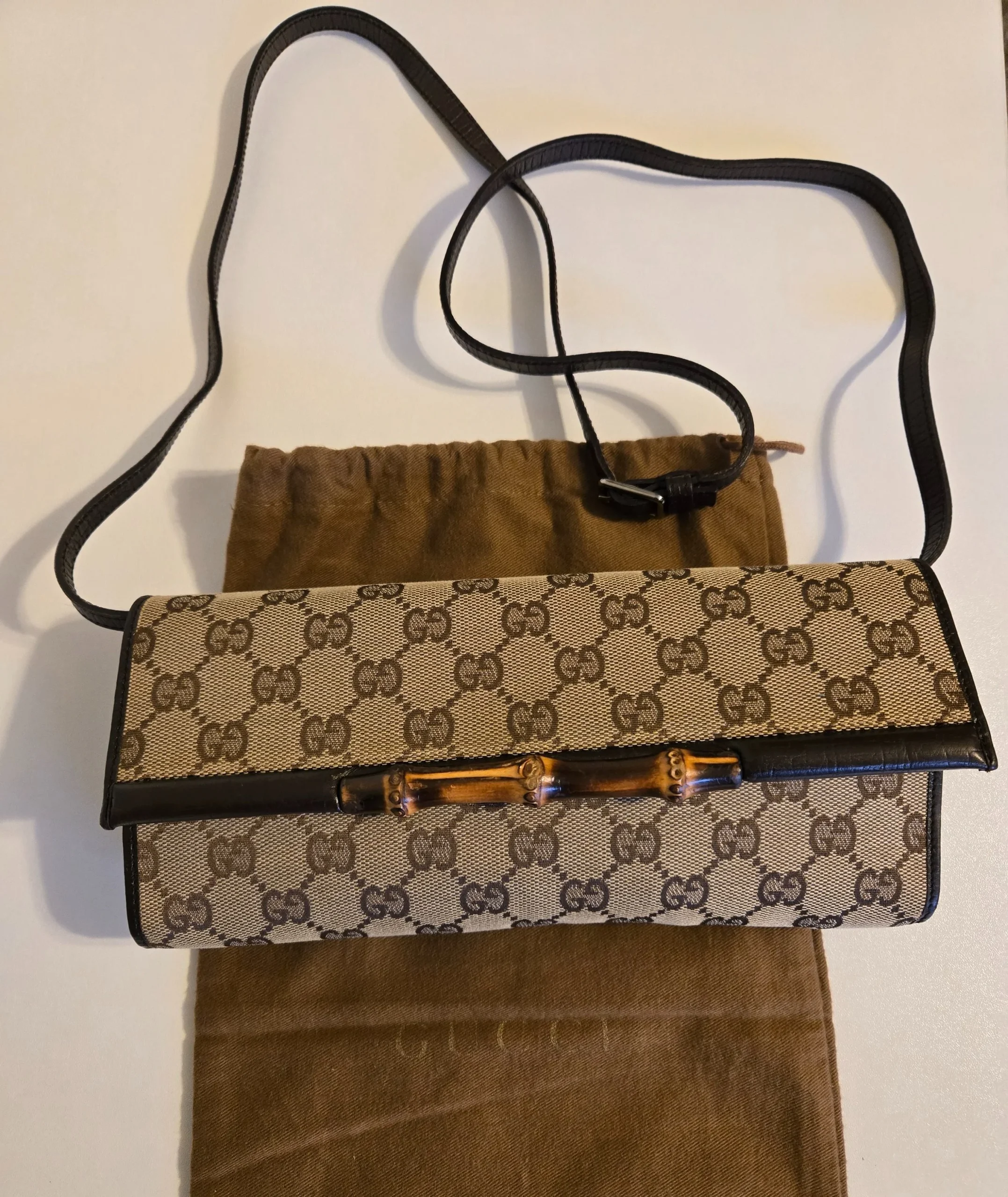 GUCCI GG BAMBOO WOMEN’S SHOULDER BAG SACOCHE CANVAS LEATHER PRE-LOVED.