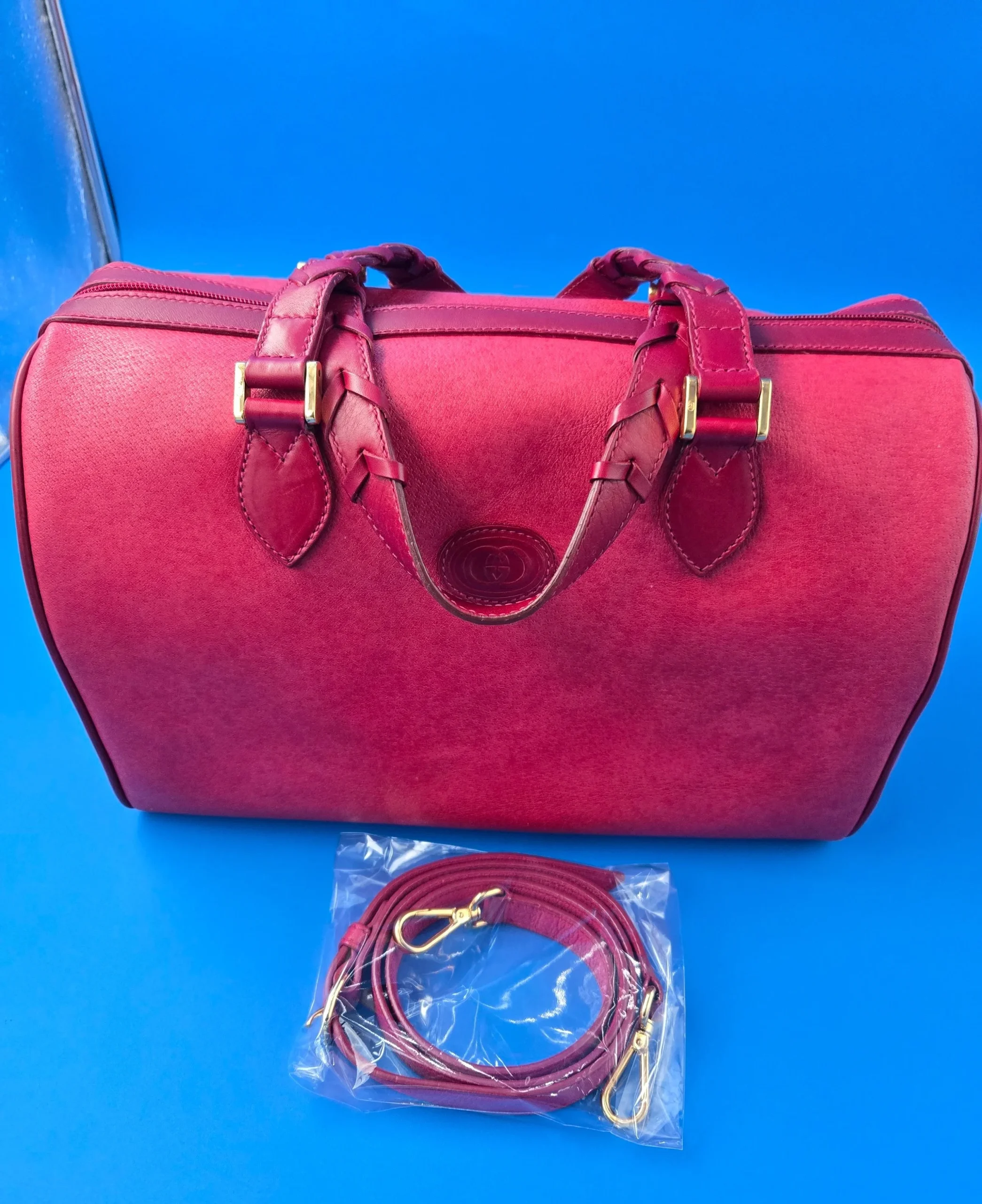 GUCCI GG WOMEN’S BOSTON HANDBAG LEATHER Color Red Pre-Loved.