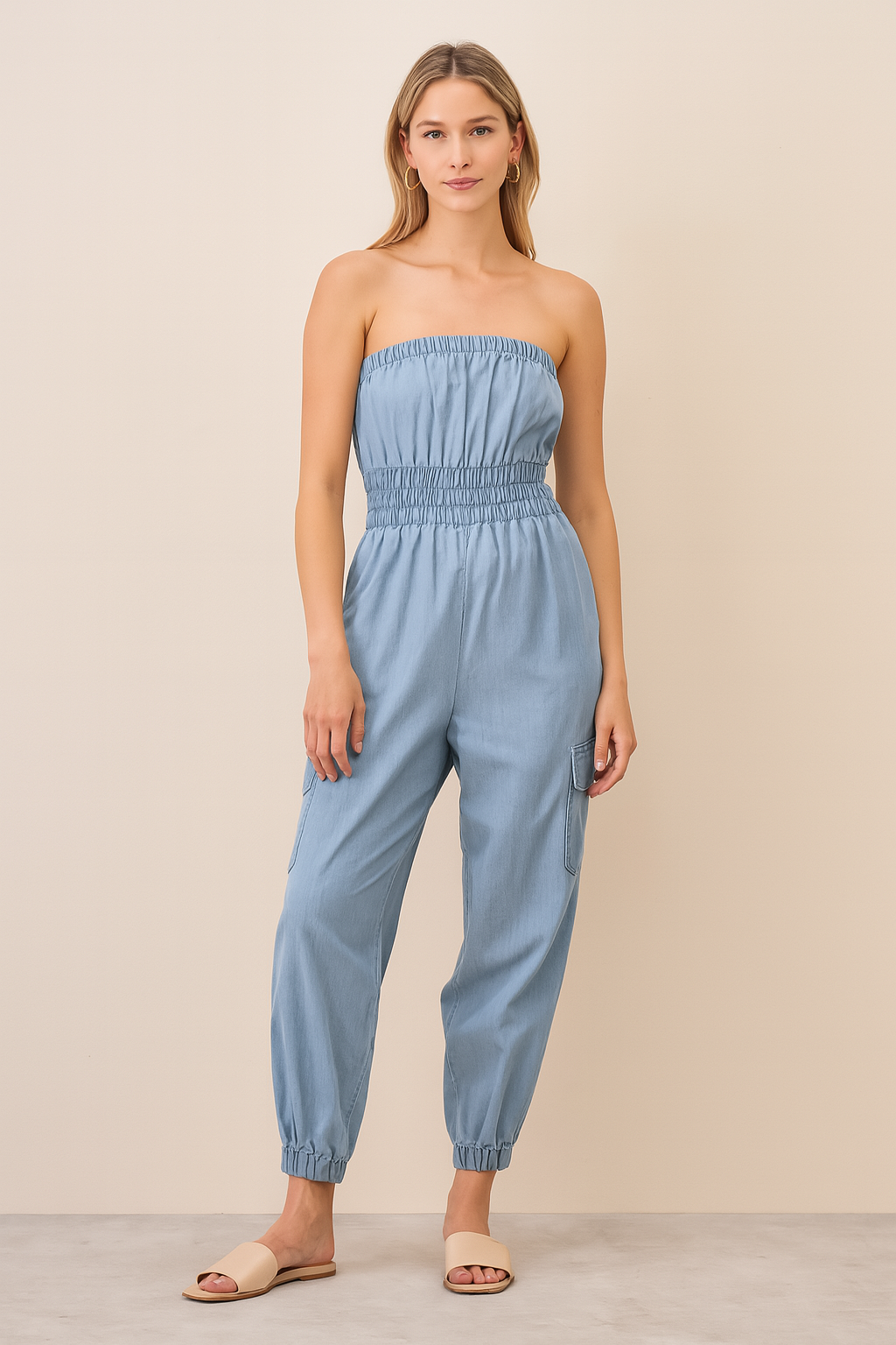 Gogo Strapless Cargo Luxury Denim Jumpsuit​ Size Small NEW.
