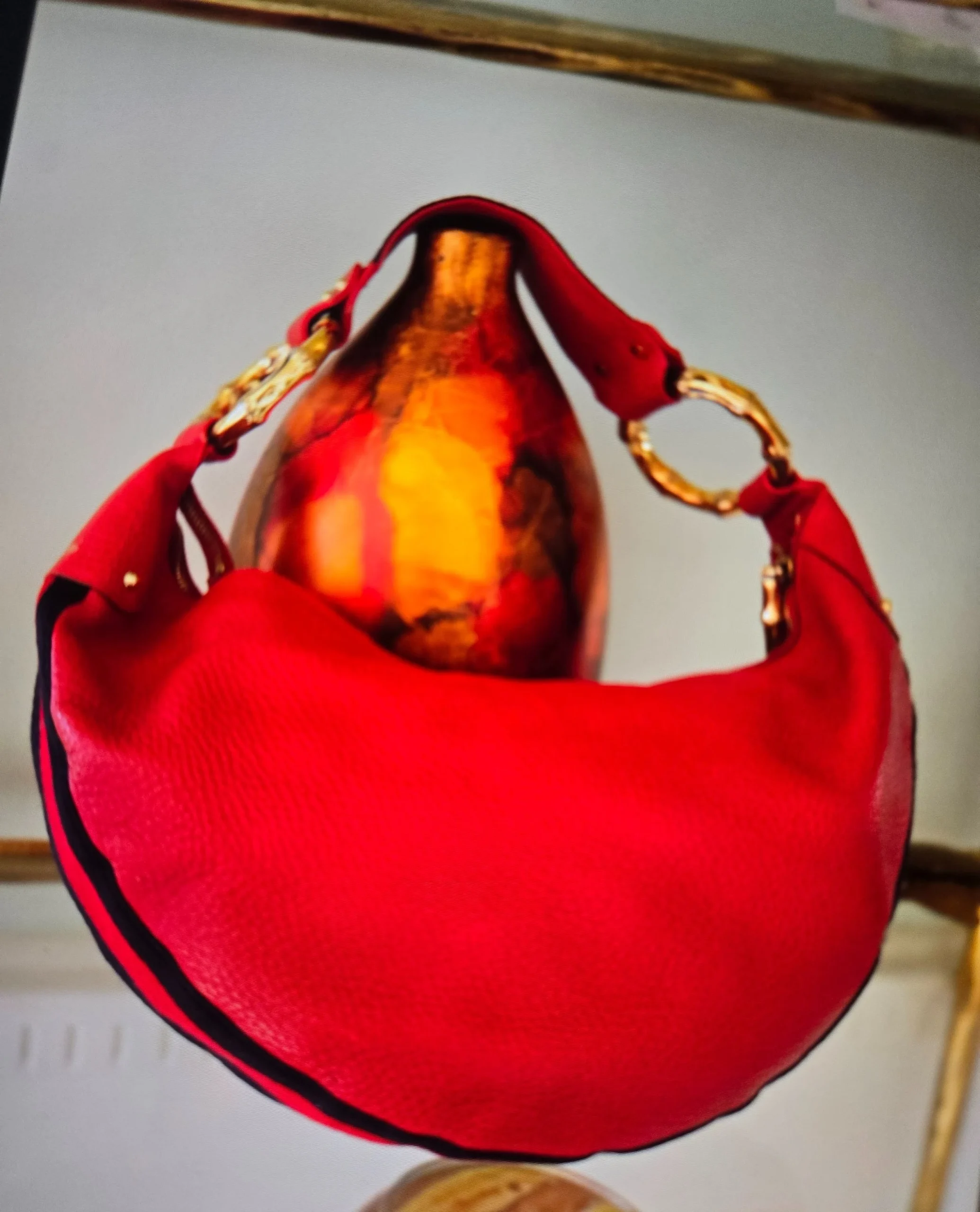 GUCCI SHERRY LINE WOMEN’S HANDBAG HOBO SHOULDER LEATHER BAG Color red / red & blue stripe.