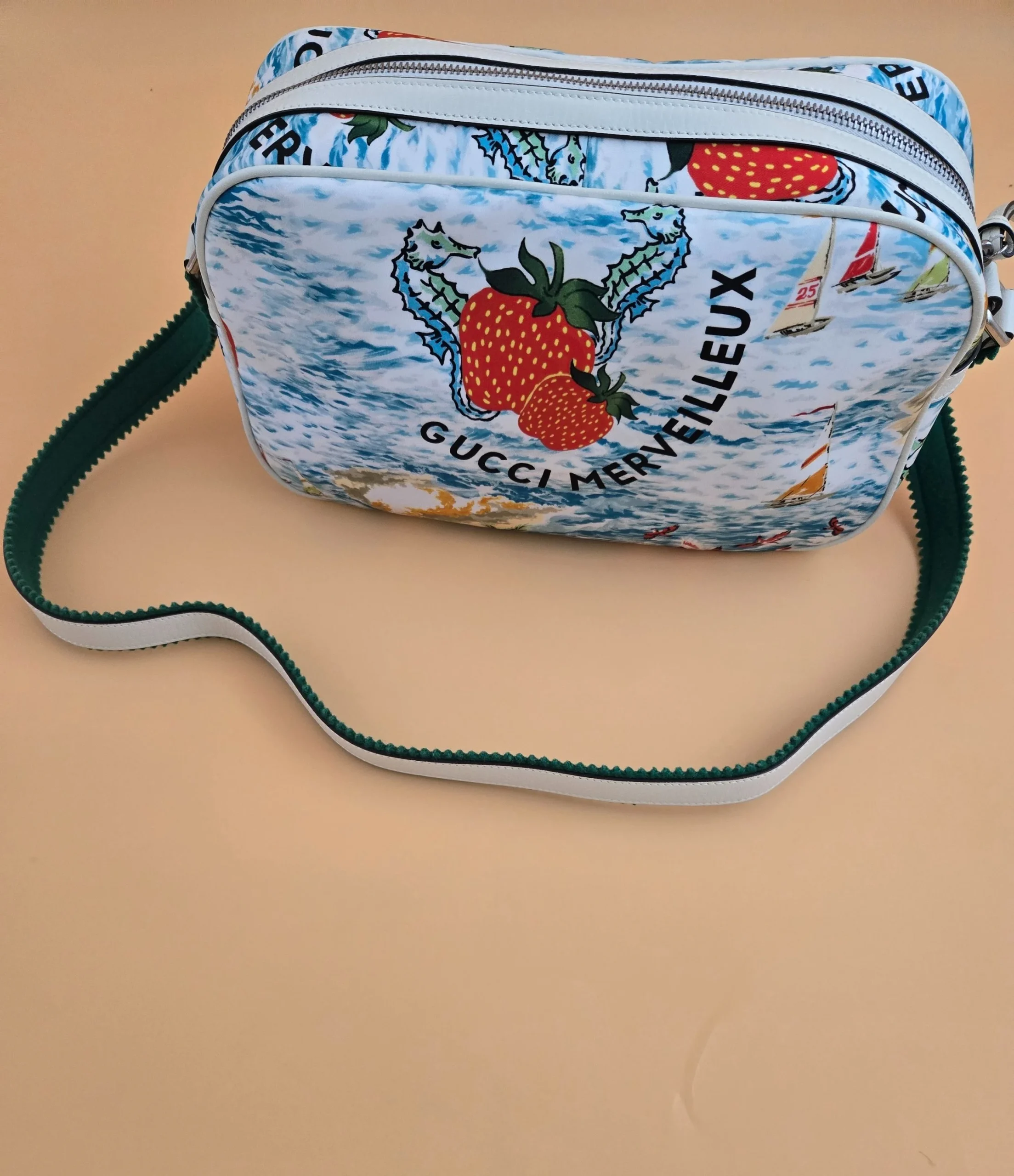GUCCI WOMEN’S SHOULDER BAG CROSSBODY NYLON LEATHER BLUE STRAWBERRY PRE-LOVED AUTHENTIC brand. Excellent quality condition