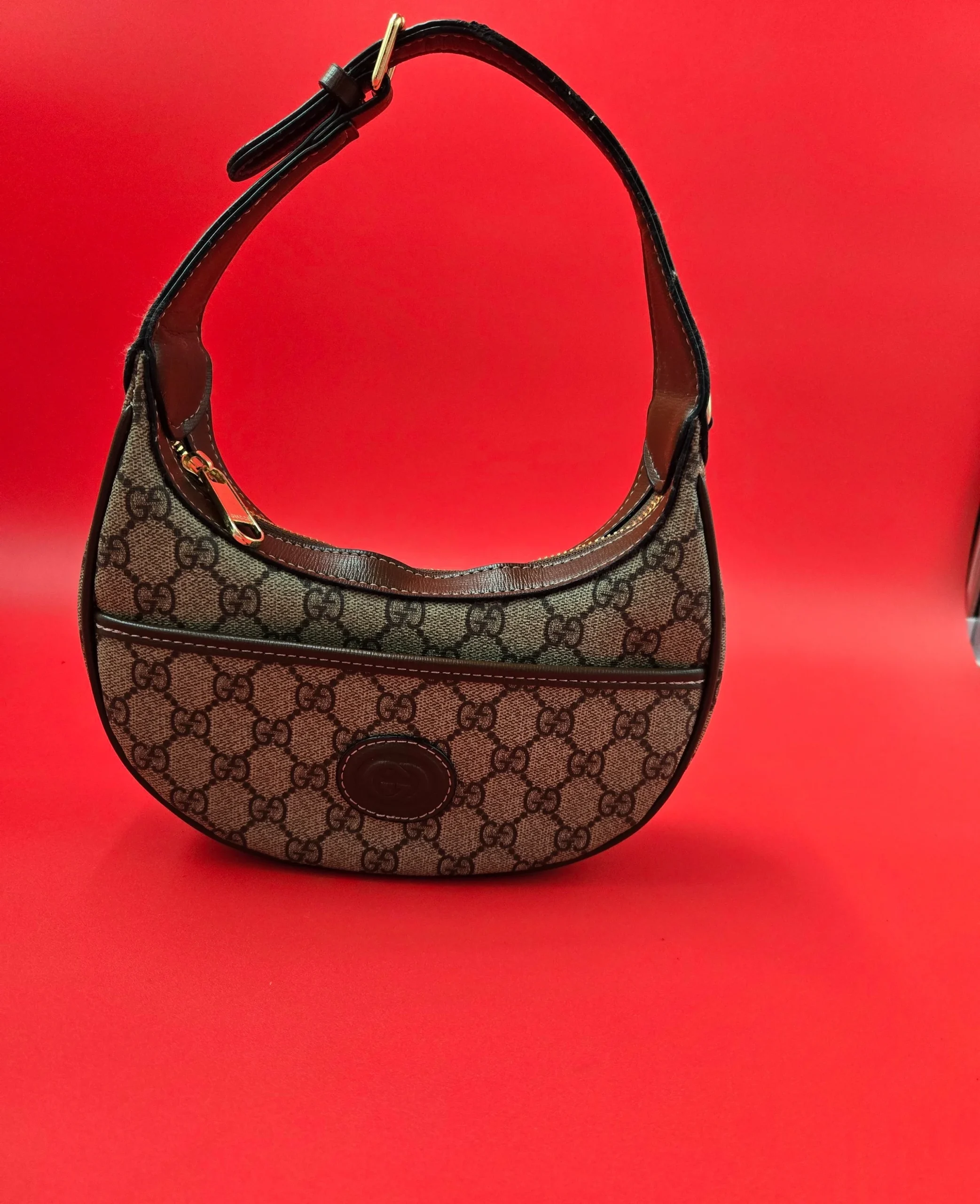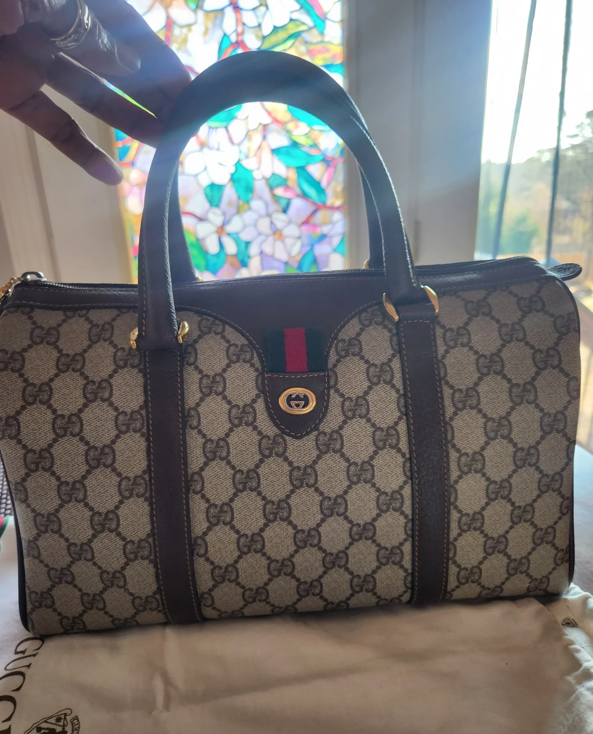 GUCCI VINTAGE BOSTON GG PATTERN ZIP PVC LEATHER AUTHENTIC HANDBAG pre-Loved.