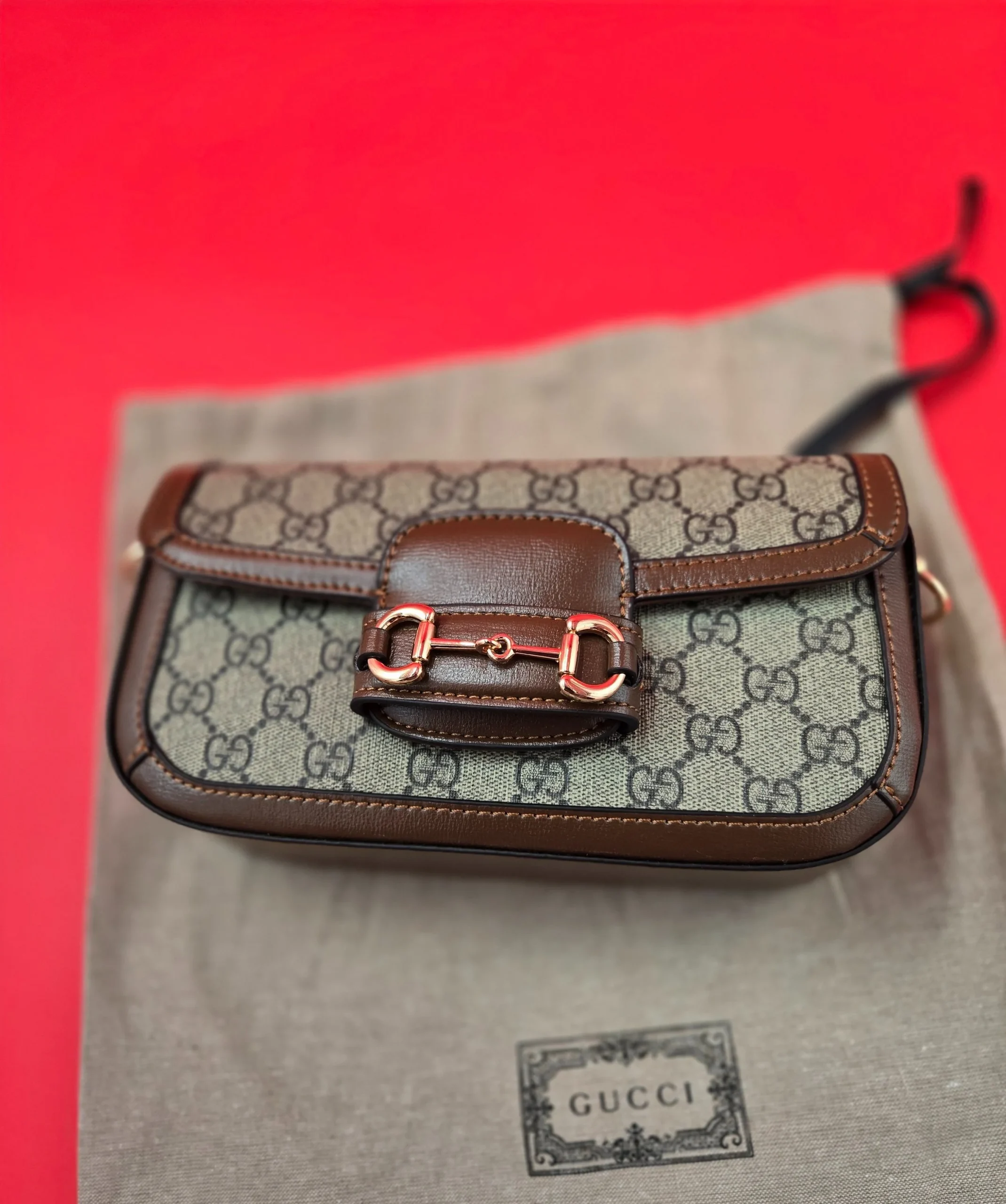 Authentic Gucci Horsebit GG 1955 2way top handle & shoulder cavas bag.