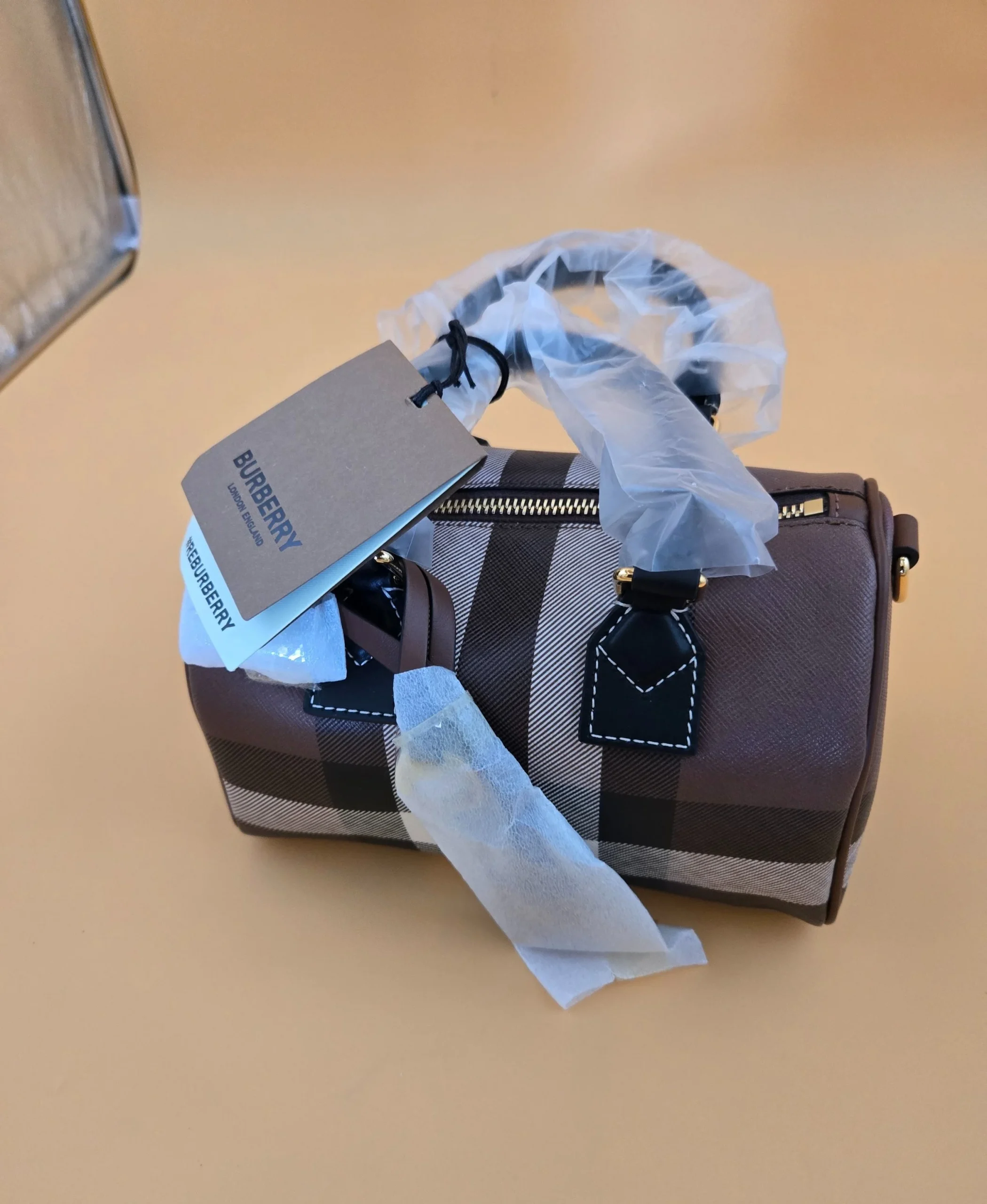 Brand NWT Burberry Women’s Dark Brown Birch Bowling mini bag.