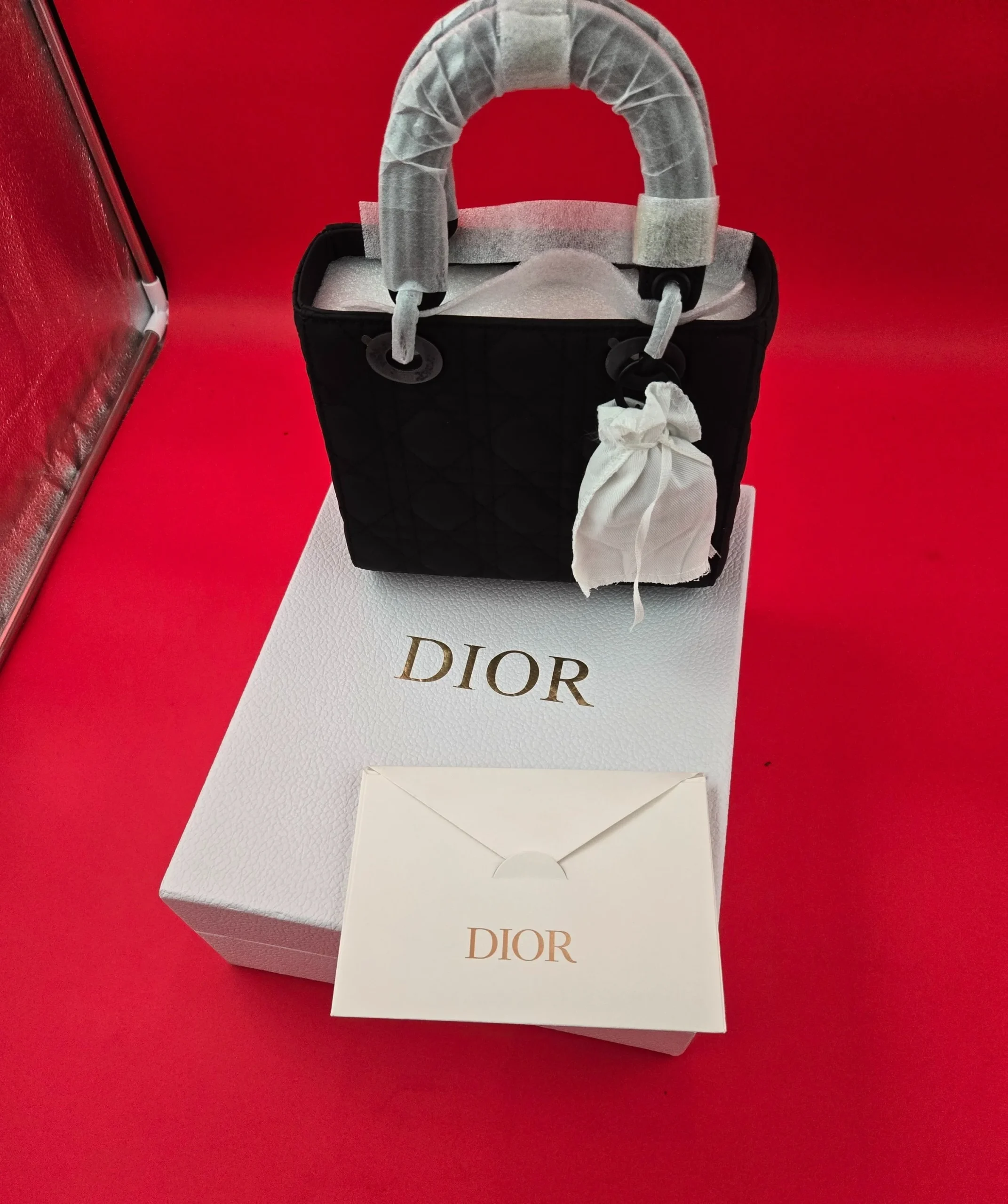 CHRISTIAN DIOR Dior Lady Mini Black Matte Cannage Calfskin shoulder/crossbody handbag NEW.