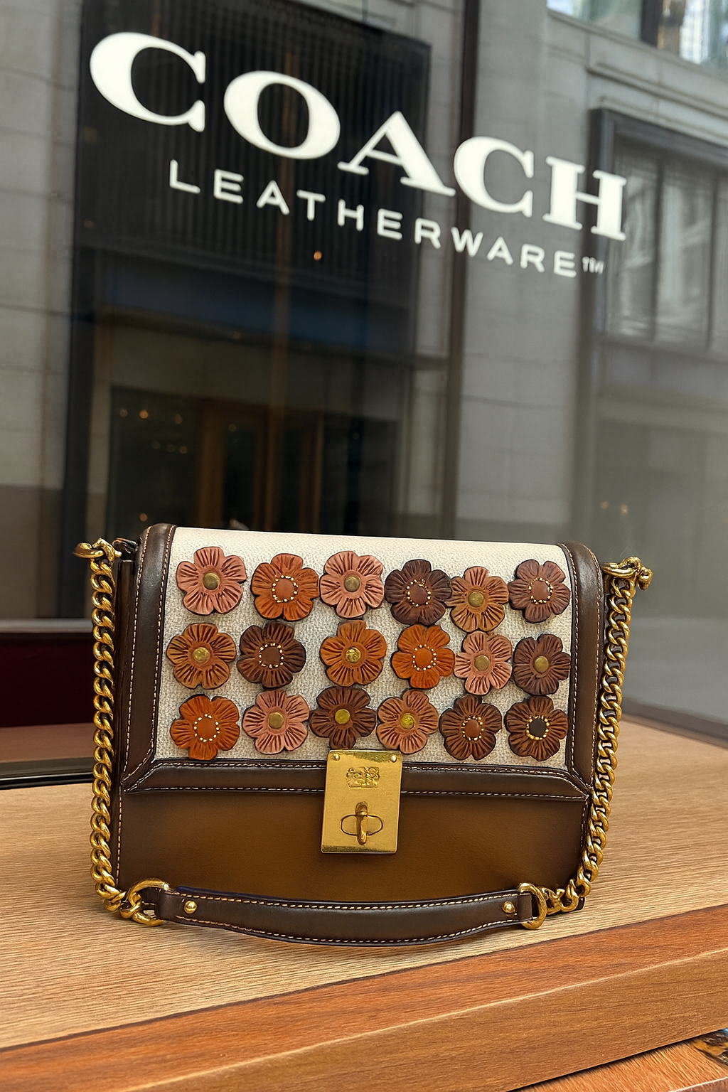Coach FLORAL APPLIQUE SHOULDER BAG CHAIN STRAP New