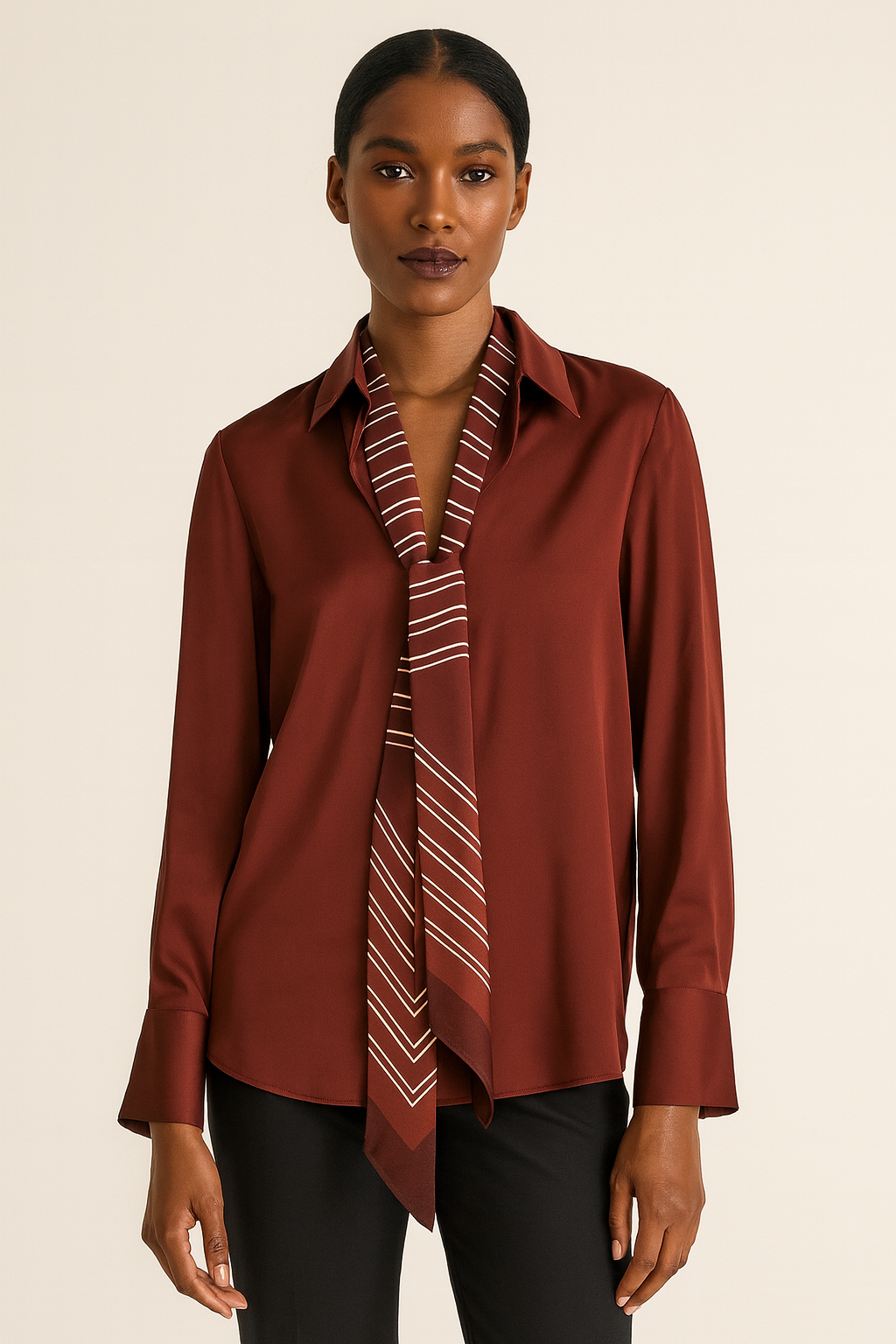 CUPCAKES AND CASHMERE BURGUNDY BUTTON DOWN BLOUSE WITH STRIPED SCARF New Size X-Large